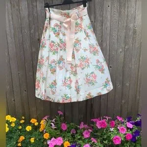 The flared skirt has a wide belt with loops and is decorated with a ribbon that can be tied to a bow.