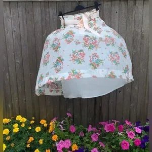The skirt is made of semitransparent fabric and has white lining fabric.