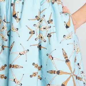Boasting a light blue background color, a retro swimmer print by British illustrator Dupenny, and flattering princess seams, this pocketed A-line from ModCloth’s namesake label will make your day to day just delightful.
