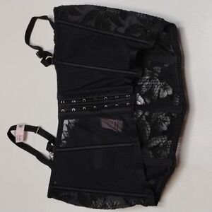 Chic black lace corset with floral detailing. Offers style and comfort. unlined s/Dd