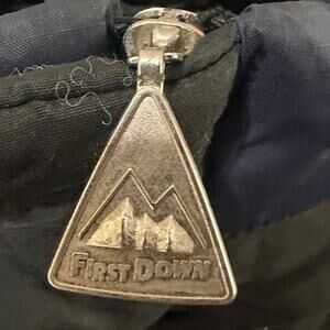First Down Puffer heavy duty coat Vintage Black&Blue Mens LG Duck Down 3.5lb