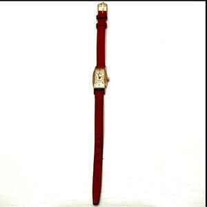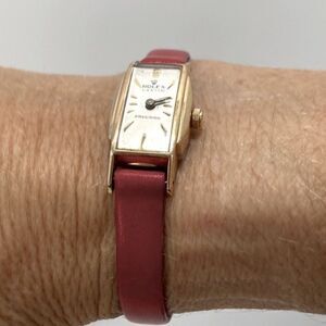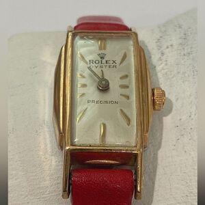 Rolex Vintage Swiss Oyster Perpetual Yellow Gold Red Leather Strap Women's Watch