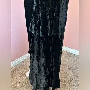 Material: The dress is crafted from a luxurious, soft black velvet, crushed velvet, which gives it a rich texture and elegant drape.