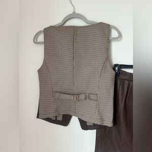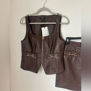NWT 7 for all mankind size M brown pleather skirt and vest with stylish gold buckle details. Perfect for a modern, clean look. I love the plaid detail on the back of the vest. My closet is full of other nwt designer clothes, bags, jewelry, and more. Bundle items you like for an offer. I ship same day and update my closet daily