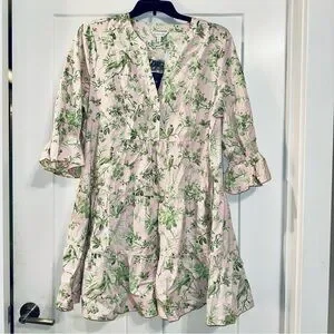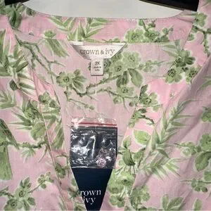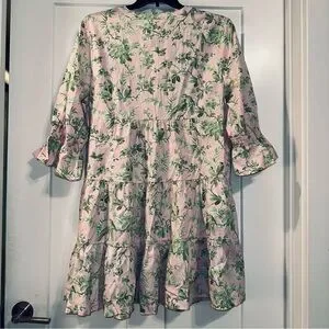 Crown & Ivy 3/4 sleeve Tiered Dress Pink Green Toile NWT 2X with Pockets