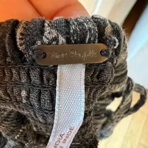Tag size small. Laying flat measures approximately 16 inches armpit to armpit, but the sides are open which gives flexibility. 12 inches right across the smocked waist stretching to 16 inches without much resistance, 28.5 inch inseam and the leg opening is 18 inches flat across the hem.