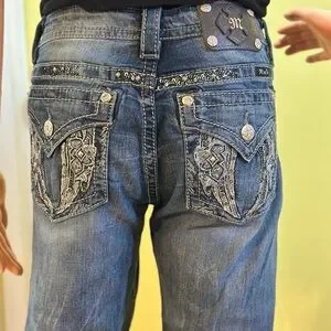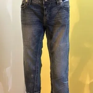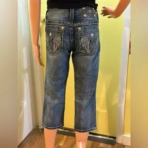Stylish Miss Me blue jean capri. Super cute with intricate embellishments. Perfect for any occasion. Pair with a tank top and flip flops or formal it up with a dressy blouse and heels! Pictures are part of the description. Smoke and pet free home. Model is 5'7".
