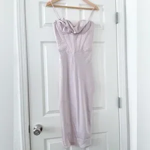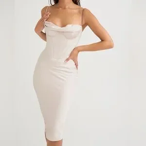 This elegant blush corset dress is perfect for any special occasion. Its sleek design and flattering fit make it a must-have in your wardrobe. Size small