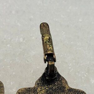 Vintage Brass Crystal Amber Rectangle Drop Earrings 1.25 in Leverback Pierced