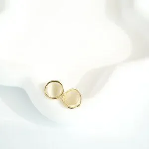 These earrings feature a minimalist design with round opal gemstones, showcasing their natural iridescence and charm. Materials: Opal, Sterling Silver Earring Posts