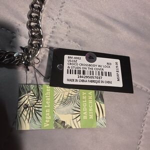 Elevate your style with this stunning red croc-embossed bag. Featuring a chic chain strap and elegant design, it's perfect for any occasion. Vegan Leather