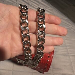 Red Croc-Embossed BAGLEY With Studs And Silver Shoulder Or Cross Body Chain