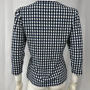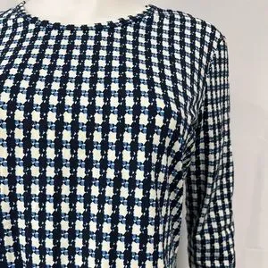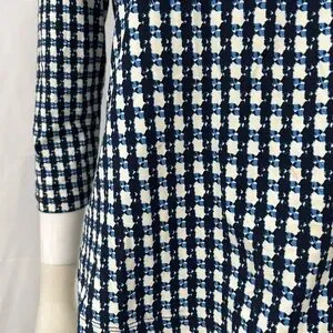 The J. McLaughlin Rich Classy 3/4 Sleeves Stretch Summer Resort Cruise T-shirt Top in size M is a stylish and comfortable option for women looking for a chic beach-themed top. The geometric blue pattern and stretch feature make it perfect for summer outings or cruises. With a flattering 3/4 sleeve length and basic style, this top is a versatile addition to any wardrobe, ideal for staying stylish and comfortable in warmer weather.