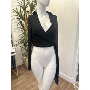 NEW TOBI Sheer Black Wrap Top Women Size S Blouse Side Tie Lightweight V Neck