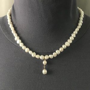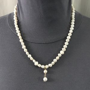 Want to wear a classic pearl drop necklace just like the one brave Buttercup wears in The Princess Bride? As you wish! This is a beautiful handmade replica of Buttercup's pearl necklace, with real, all natural, cultured pearls. Natural pearls are shaped irregularly with small variations, just like the pearls on Buttercup's necklace. Since the necklace is adjustable from 15.5 to 23 inches, you can wear it as a choker or a bit looser. The 2-pearl drop is 0.875 inches in length. This replica has been newly handmade just for you, and is from a smoke and pet free home.