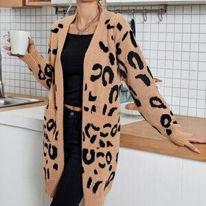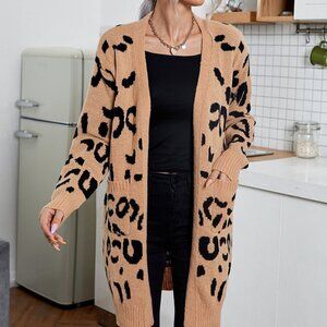 Camel Casual Women's Leopard Print Drop Shoulder Cardigan