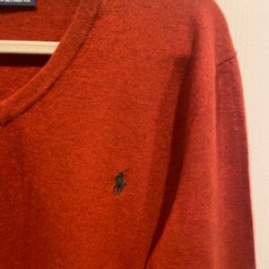 Polo by Ralph Lauren Burnt Orange Mens V-Neck Logo Sweater Size Large