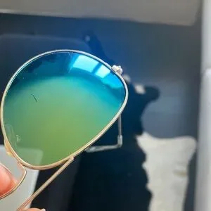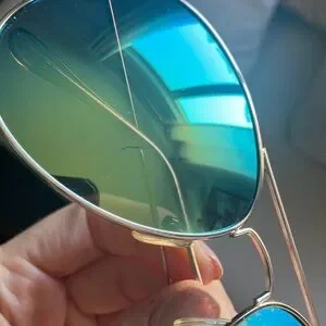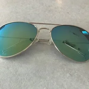 Stylish aviator sunglasses featuring blue-green lenses. Perfect for a chic look.