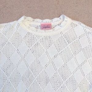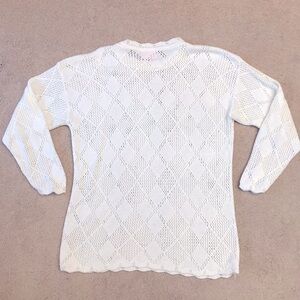 Vintage 90s Jaclyn Smith White Open Knit Tunic Sweater Womens Large Layering