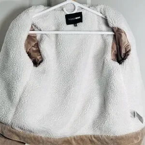 Elevate your look with this khaki corduroy jacket from Fashion Nova. Features a soft sherpa inside, chest and hip pockets.