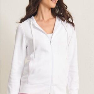 Elegant cream hooded jacket with zip-up front. Ideal for relaxed outings.