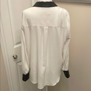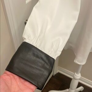 Ellen Tracy Black and White Contrast Blouse leather cuffs & Collar, buttons
