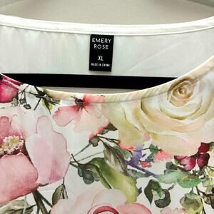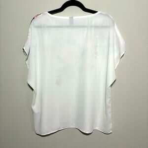 Floral White Scoop Neck Flowy Top Feminine Style, Size XL