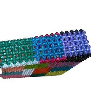 Add a touch of vintage-inspired charm to your collection with this Susan Alexandra Ash Bag! This unique, handmade bag features a vibrant patchwork design reminiscent of 1970s California style. Crafted from over 1500 beads, this bag is a true statement piece.
