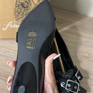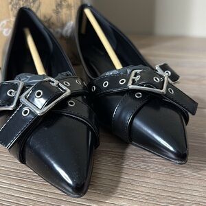 Have a throwback moment in these teeny tiny kitten heels, featured in a smooth faux leather with buckle details and sharp pointed toe. Add a sophisticated style to any outfit while remaining extremely wearable.