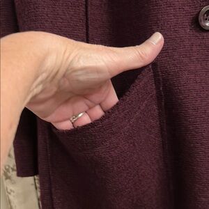 Stylish purple coat featuring large pockets and button closure. Perfect for a chic look. Very good condition All reasonable offers considered.