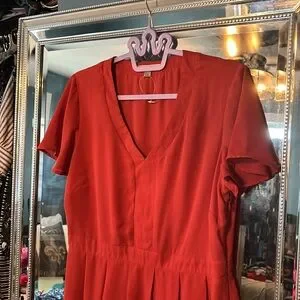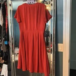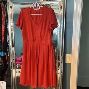 Chic midi dress with V-neck. Short sleeves and pleated skirt. Ideal for versatile styling. Color is a little more muted than pictures are making it show up but I think on a good way! Offers welcome :)