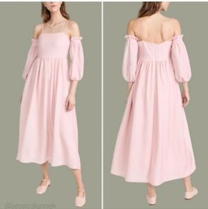 New With Tags Sister Jane DREAM Off Shoulder Long Puff Sleeve Midi Cami Dress Pink Small