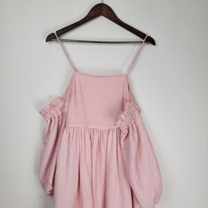 NWT Sister Jane DREAM Off Shoulder Long Puff Sleeve Midi Cami Dress Pink Small