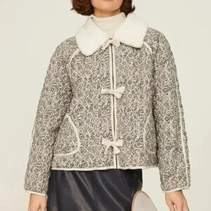 The Great. Reversible Quilted Puffer in size XS. Zipper and front tie closures. Multicolor print on both sides. Removable collar. 100% cotton.