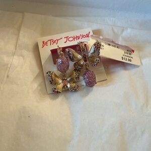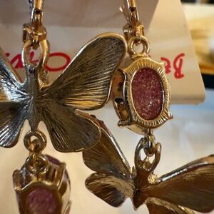 Betsey Johnson Glittery Pink and Gold Butterfly Earrings