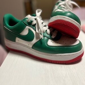 Custom Air Force One’s Green and White Sneakers with Red Soles