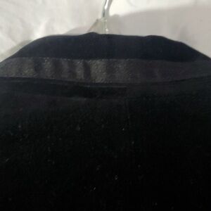 Elegant black velvet blazer. Features satin lapels and button closure. Perfect for formal occasions.