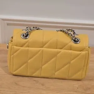 Stylish and versatile, this yellow quilted shoulder bag features a chic chain strap. Perfect for adding a pop of color to any outfit. Does not include a coach tag.