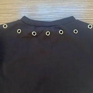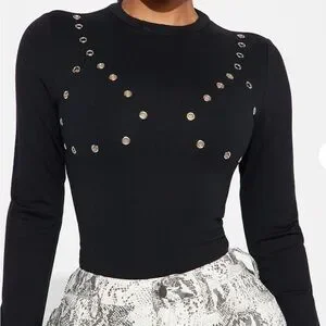 Fashion Nova XS Black Long Sleeve Bodysuit w/silver grommet detail front & back