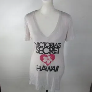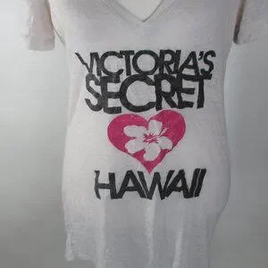 Victoria's Secret Hawaii Women's White V-neck Glitter Hibiscus T-Shirt Large