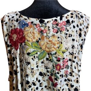 Johnny Was Floral Embroidered Velvet Sleeveless Boho Leopard Top Size XL