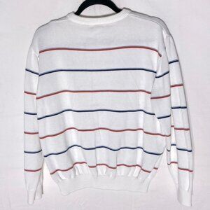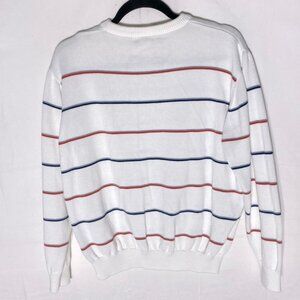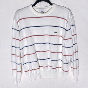 Lacoste White with Red and Blue Stripes Crewneck Sweater M