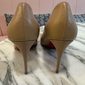 Elegant nude leather heels by Christian Louboutin. Sleek and sophisticated design.