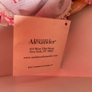 Adorable Madame Alexander doll in pink attire with a yellow top. Comes with a cuddly brown teddy bear. Ideal for playtime and collectors. Collectors condition. PET AND SMOKE FREE HOME. Photos are part of the description.