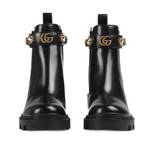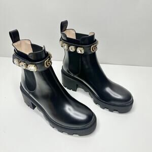Gucci Magnum 37/US 7 Chelsea Ankle Boots Black Leather Crystal Belt Bootie NIB