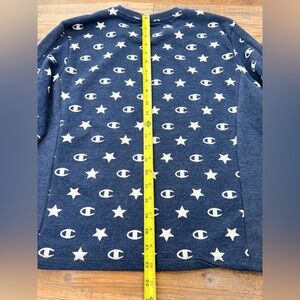 Champion Women's Blue All Over Stars and Logo Long Sleeve Pullover Tee, Size L
