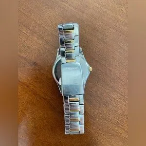 •30 mm stainless steel case with a solid back and a two-tone bracelet in silver and yellow gold-tone