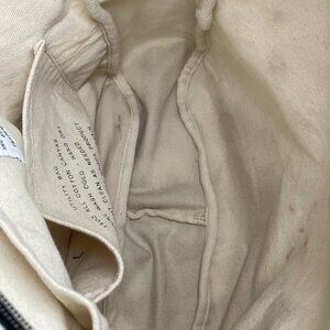Paint distressed canvas bag. Some bleed through to the inside. This is the intended design of the manufacturer.