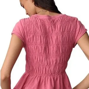 Anthropologie Pilcro Garment Dyed Ruched Crew Neck Cap Sleeve Tee