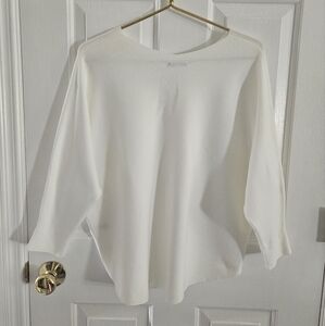 This elegant white V-neck sweater offers a classic and versatile look. Perfect for any occasion, it features a comfortable fit and stylish design.